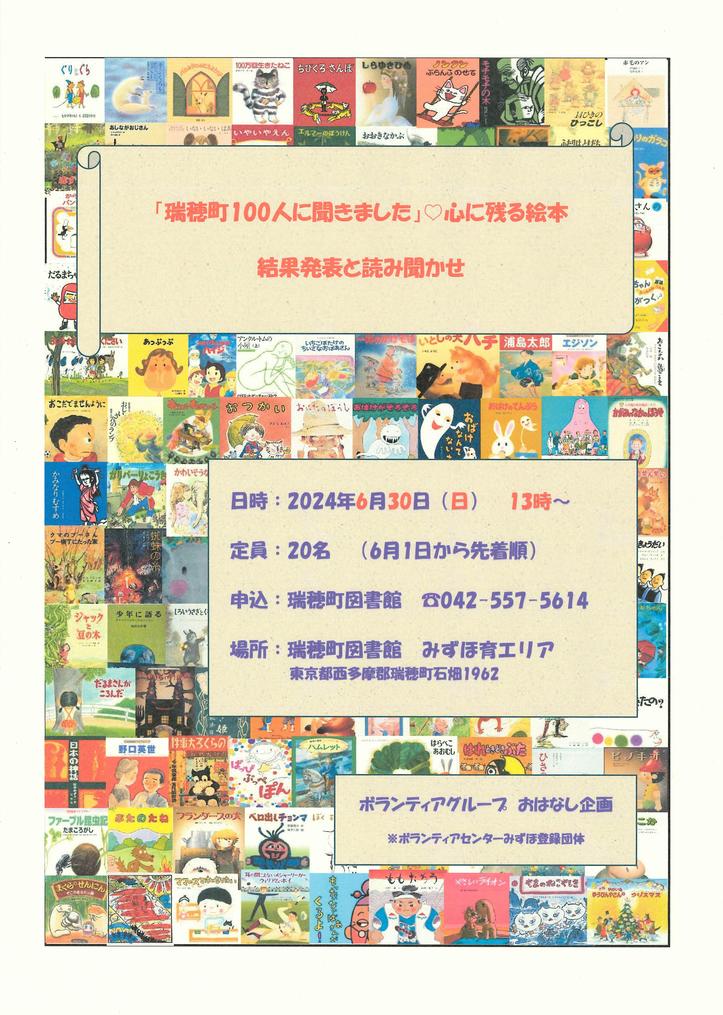 このイベントは、瑞穂町図書館とおはなし企画の共催で実施します。