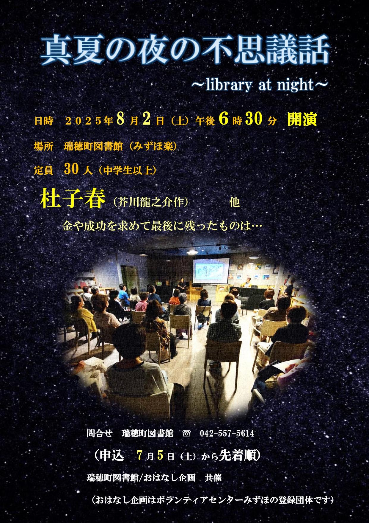 このイベントは、瑞穂町図書館とおはなし企画の共催で実施します。