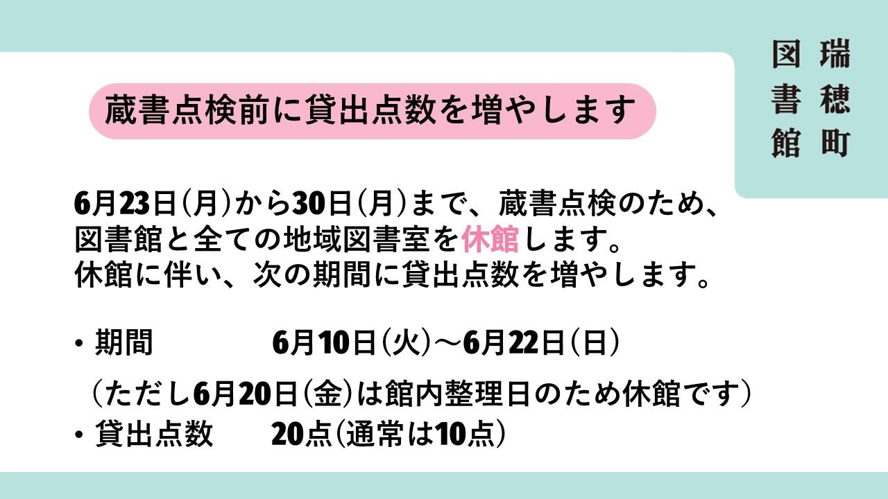 蔵書点検(図書館の本の棚卸し作業)に伴い、すべての図書館を休館します。
