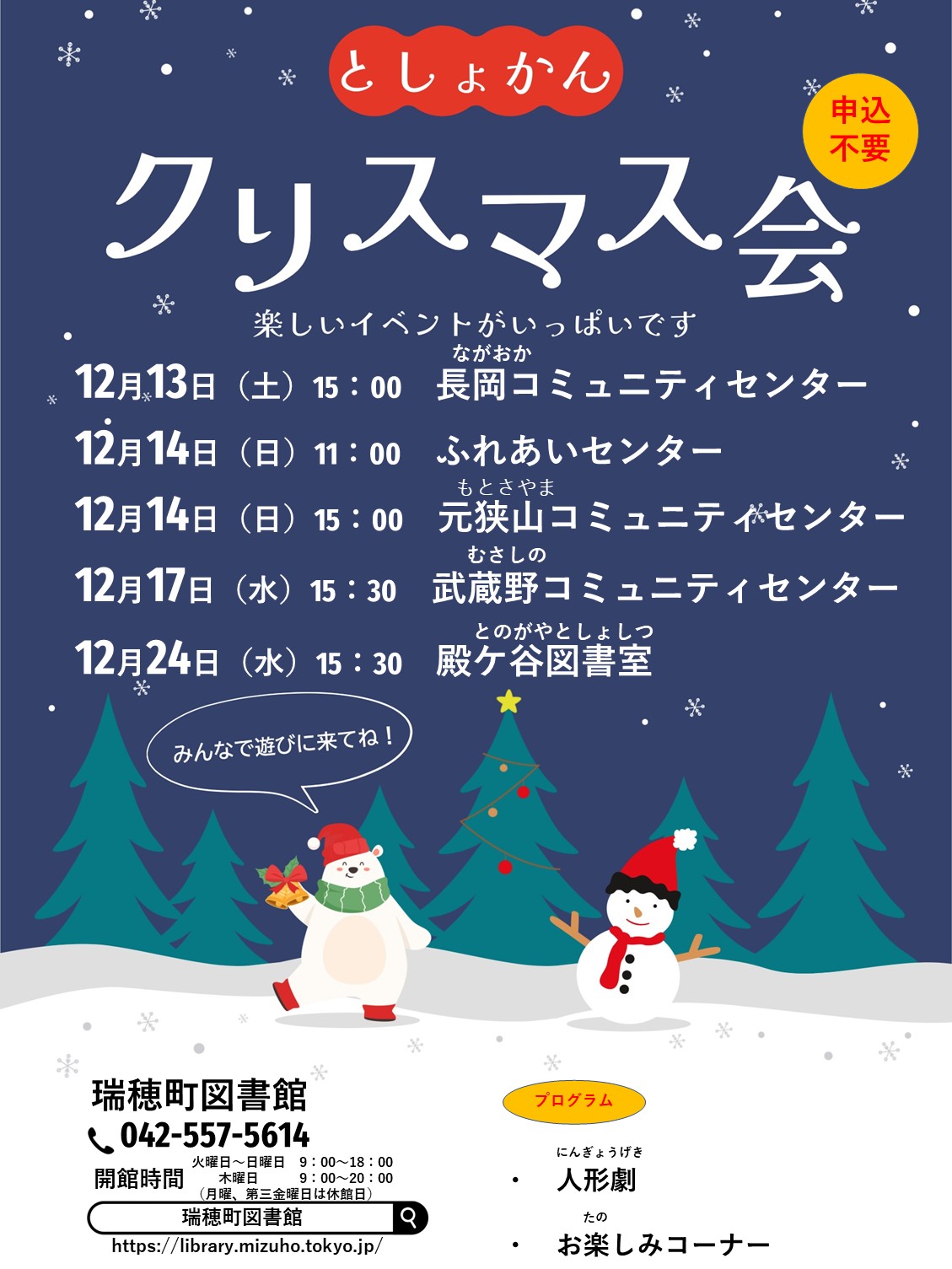 - 2025年12月1日瑞穂町図書館 12月のおはなしの会瑞穂町