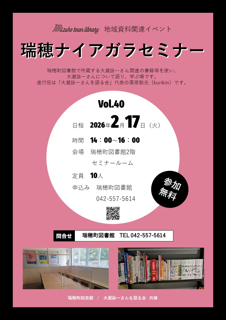 場所 瑞穂町図書館 2階 セミナールーム