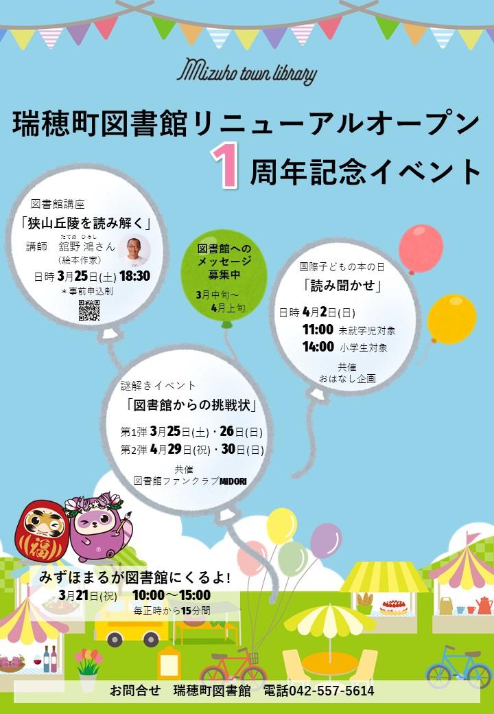 瑞穂町図書館は、令和5年3月22日にリニューアルオープンから1周年を迎えます。