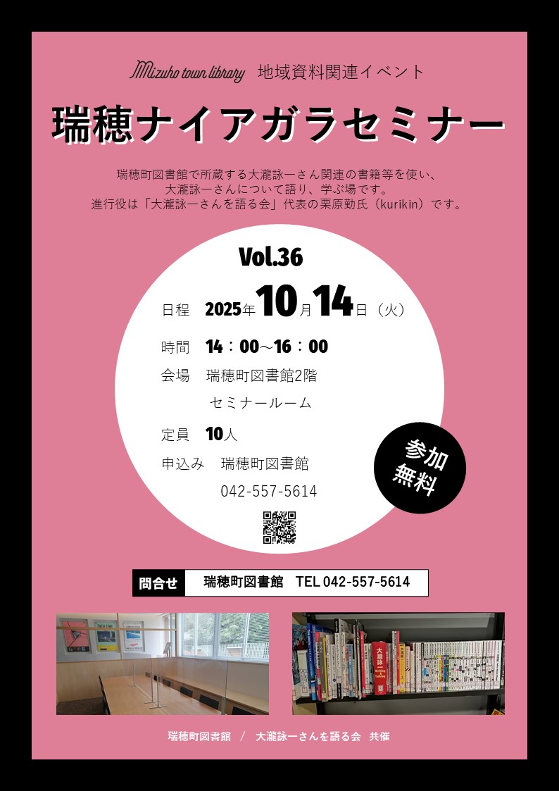 場所 瑞穂町図書館 2階 セミナールーム