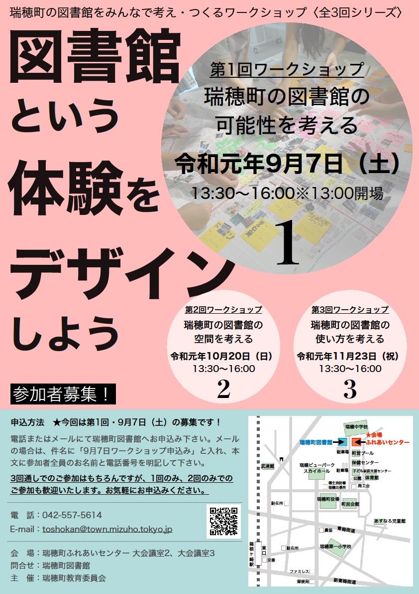 今回は、第1回ワークショップ「瑞穂町の図書館の可能性を考える」の募集です。